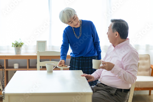 Fototapeta premium お茶の時間を楽しむシニア男女