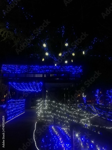 Fototapeta premium 雪の結晶の形と青色のイルミネーション
