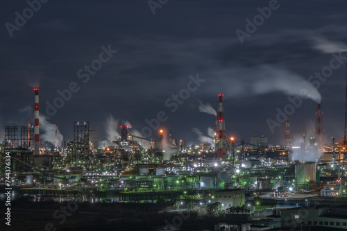 © 仁 藤原, Naklejka premium 日本の岡山県倉敷市の水島コンビナートの美しい工場夜景