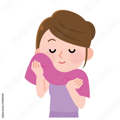 Obraz premium 顔をタオルでやさしく拭く女の子 イラスト