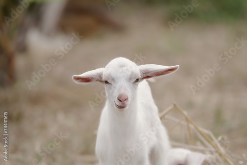 Obraz premium 沖縄県小浜島 こちらを見つめる子ヤギ
