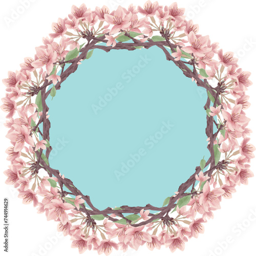 Obraz premium 水色の葉桜の八角形ベクターフレーム(水彩風)