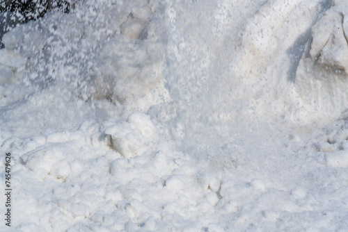 Obraz premium 投雪機によって投げられた雪が落ちていく様子