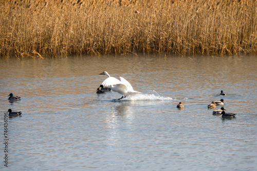 © sephoto, Obraz premium 강진만을 찾아온 겨울 철새 큰 고니