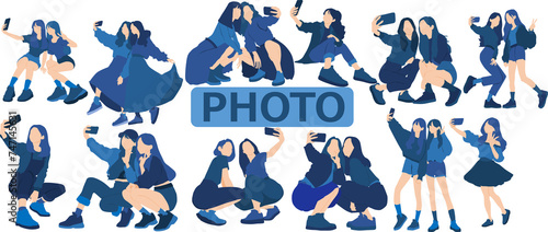 Naklejka premium 自撮りをする女性たちのイラスト