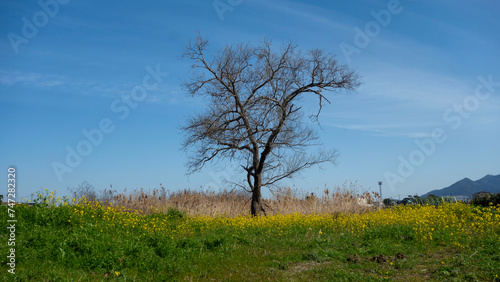 © mitsuaki, Fototapeta premium 初春の遠賀川河原の一本の木