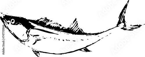 © foolchico, Fototapeta premium サワラの魚の墨絵イラスト