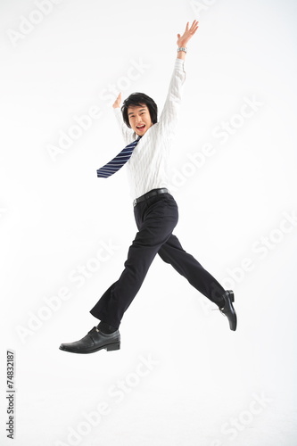 © jsco, Fototapeta premium 팔 벌린 채 점프하는 비즈니스맨