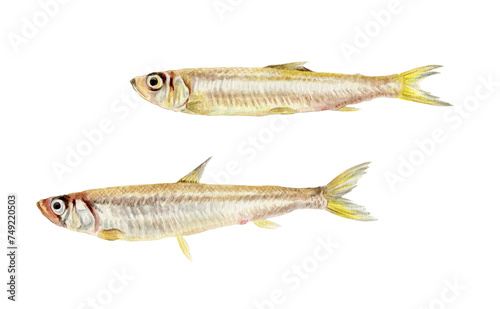 Obraz premium ワカサギ 手描き水彩画