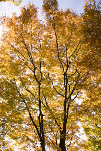 © moonrise, Fototapeta premium 黄葉したケヤキの木