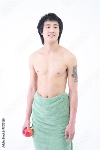 © jsco, Obraz premium 스튜디오 안의 다이어트 하는 젊은 남성
