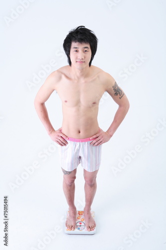 © jsco, Fototapeta premium 스튜디오 안의 다이어트 하는 젊은 남성