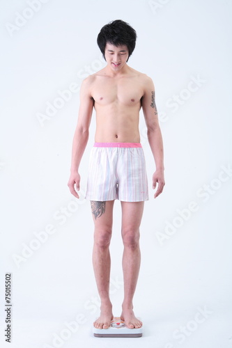 © jsco, Fototapeta premium 스튜디오 안의 다이어트 하는 젊은 남성