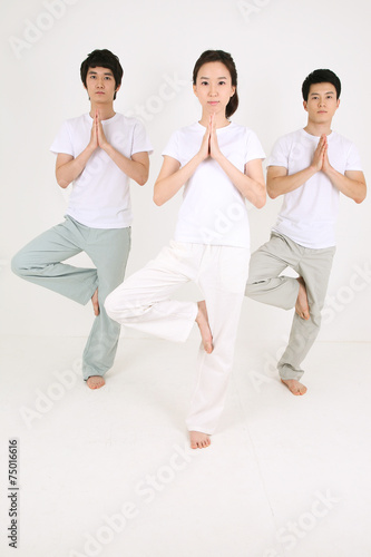 Naklejka premium 요가하고 있는 젊은 남성과 여성