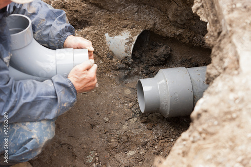 Fototapeta premium 水道工事 下水管の敷設