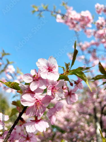 © studio kubo, Obraz premium ピンクのサクラのクローズアップと青空