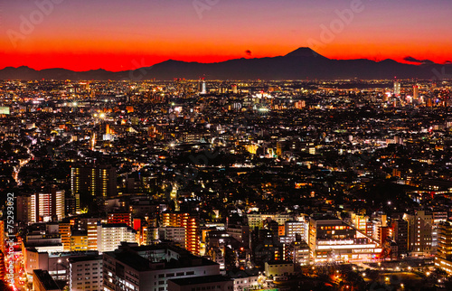 Naklejka premium 東京の夕暮れと富士山