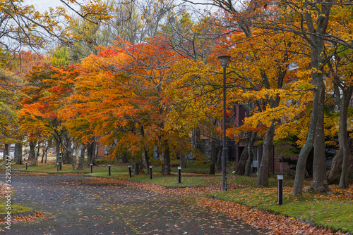Naklejka premium 日本 青森県十和田市奥瀬十和田湖畔休屋の十和田湖湖畔の紅葉
