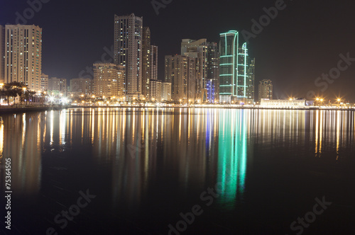 © aphonua, Fototapeta premium Ночной город. Лагуна Халид. Шарджа