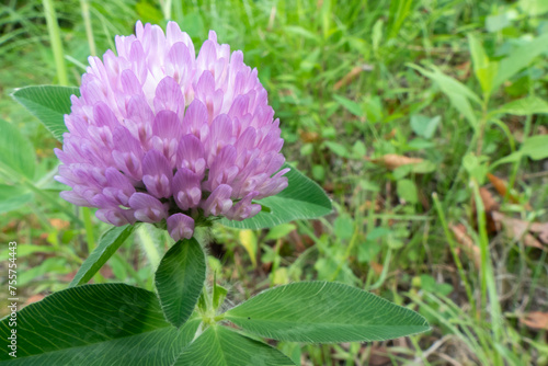 Obraz premium 公園の道ばたに咲いていたムラサキツメグサ