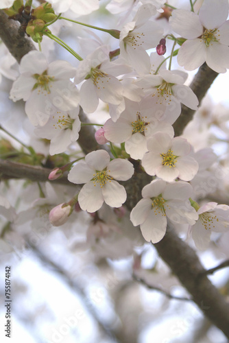 © 白菜, Fototapeta premium 山の桜の花のクローズアップ、縦位置。