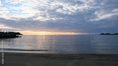© 月狐GEKKO, Fototapeta premium 海岸から見る、太陽が海に沈む景色。