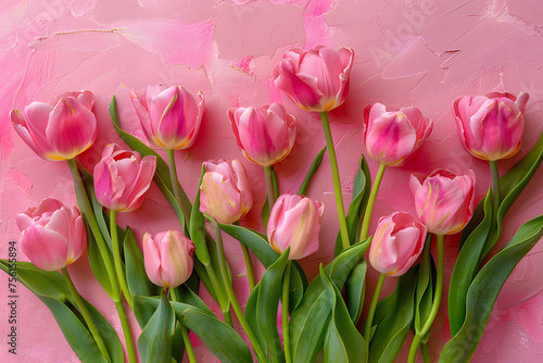 © dadakko, Naklejka premium ピンクのチューリップの花とピンクの背景