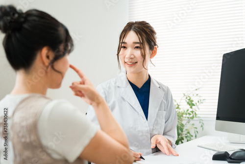 Obraz premium 鼻整形の美容外科のカウンセリング・耳鼻科の医師の診察を受ける女性・診療・問診・相談(美容整形)