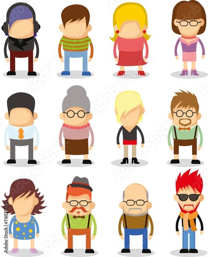 Fototapeta premium Набор милые значки символов в плоском исполнении