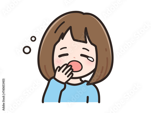 © ふわぷか, Obraz premium 眠いの若い女性のイラスト