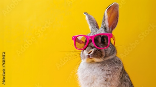 © StudioFF, Naklejka premium ピンクのサングラスをかけたウサギ