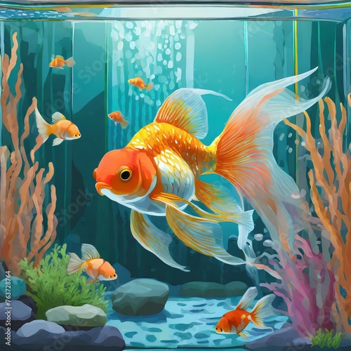 © Jinny, Naklejka premium 어항에서 수영하는 골드피시