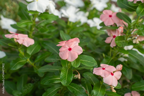 © hiroyoshi, Obraz premium 夏の花壇でカラフルに咲くニチニチソウ