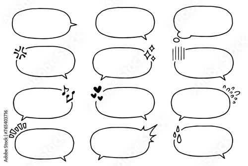 Fototapeta premium 手描きのシンプルなモノクロのふきだしセット