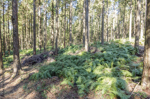 Fototapeta premium 林の下に生えているシダ