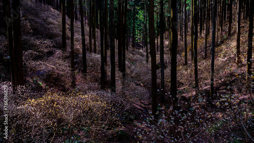 Obraz premium ミツマタの咲く森 栃木 茂木 焼森山