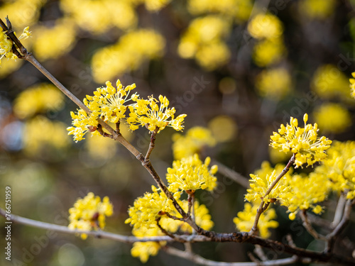 © かめです, Obraz premium 黄色い花が満開のサンシュユ