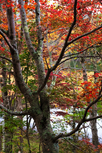 Fototapeta premium 福島県 観音沼森林公園。公園一帯は、野鳥の宝庫であり、四季を通じてさえずりを楽しめます。観音沼の周囲には四季折々の美しさを楽しめる花木等が植栽され、散策路が9コース整備され、春・夏・秋それぞれに違う表情を見せる観音沼を、ゆっくり散策しながら楽しむことができます。その神秘的な景観に魅了された多くのカメラマンが訪れることでも有名です。
