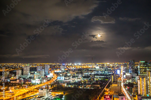 © hiroshikanao, Fototapeta premium バンコクの夜景と満月