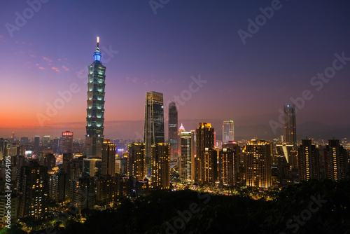 © 健太 上田, Fototapeta premium 台湾 台北市 象山、展望台(煙火平台)から見る台北の日没