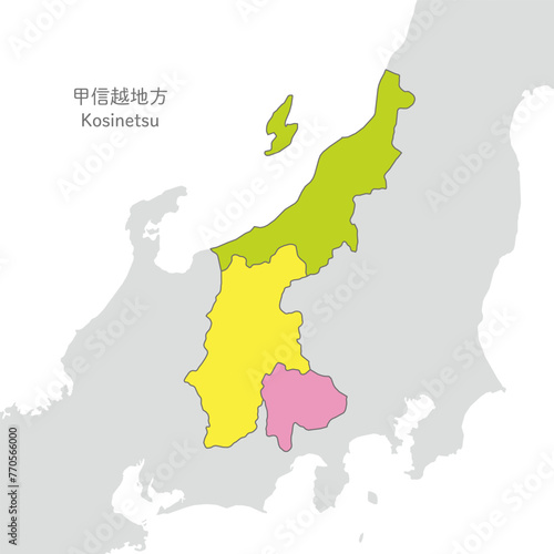 Obraz premium 甲信越地方、甲信越地方の各県の地図、カラフルで明るい