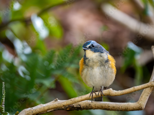 Fototapeta premium 藪の中でのんびりして首をかしげたルリビタキの雄