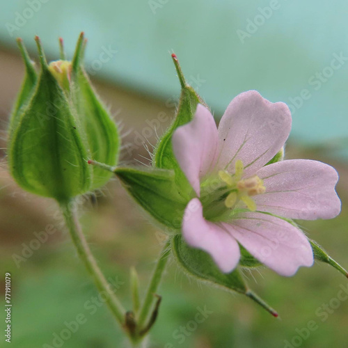 Obraz premium 冬にアメリカフウロがピンク色の花を咲かせています