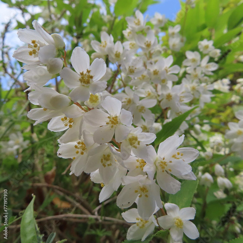 Fototapeta premium 春にヒメウツギが白い花を咲かせています