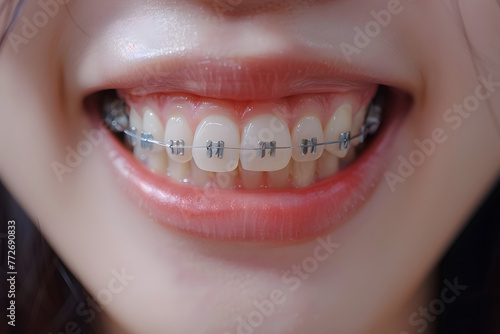 Obraz premium 笑顔のアジア人女性の歯科矯正