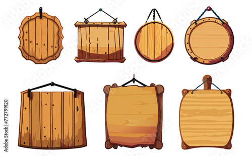 © Scratching Machine, Naklejka premium 吊り下げ木製看板ベクターイラストセット