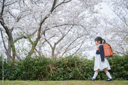 © 茂輝 田代, Fototapeta premium 桜とランドセルの少女