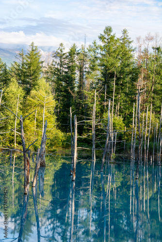 © まり子 佐藤, Obraz premium 水面に映る雑木林 青い池