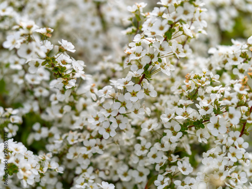 Obraz premium 満開に咲いたユキヤナギのクローズアップ