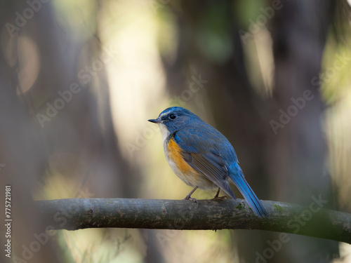 Fototapeta premium 森の中でのんびりしているルリビタキの雄
